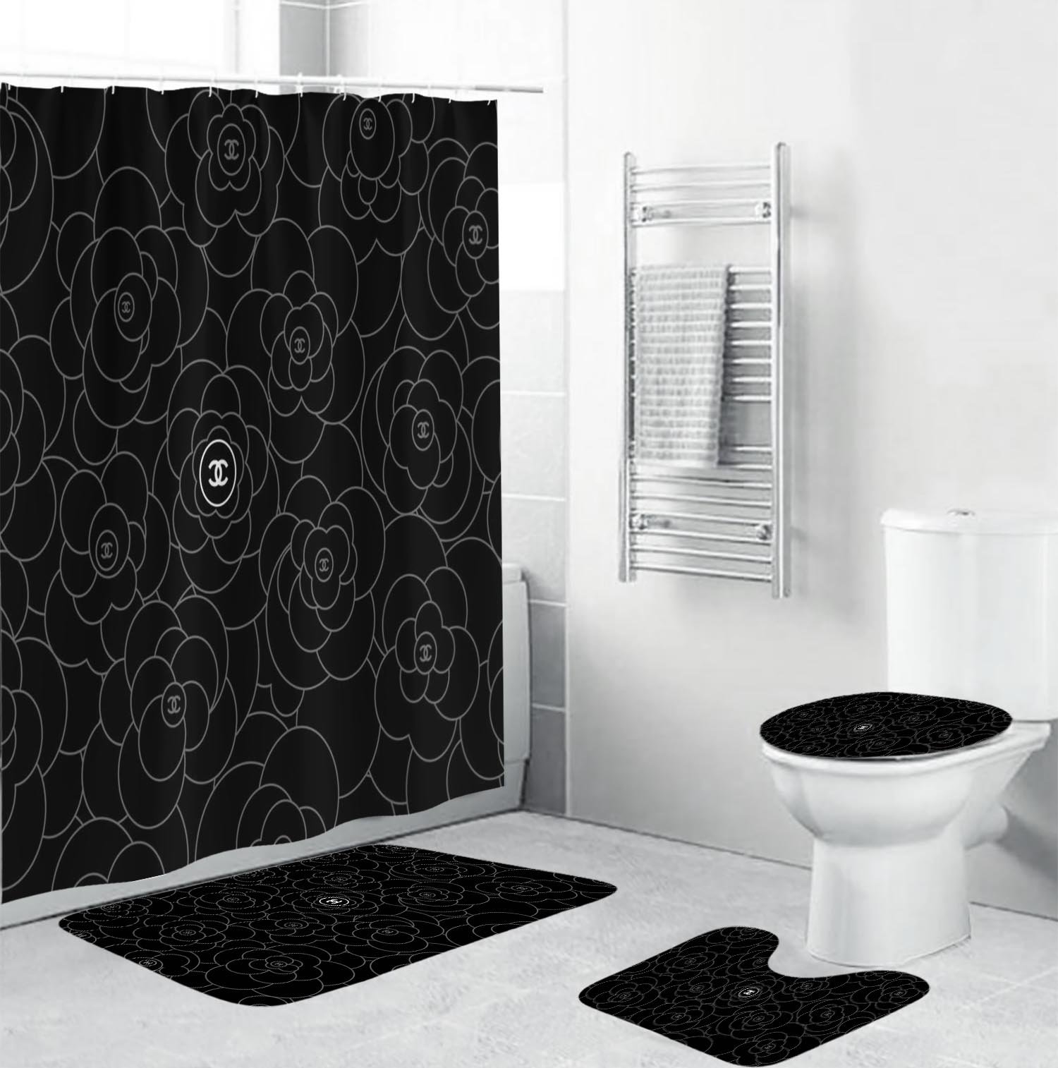 1Ps Onlay Chanel shower curtain, 4Pcs Chanel bathroom set, 3Pcs only Bath Mats set