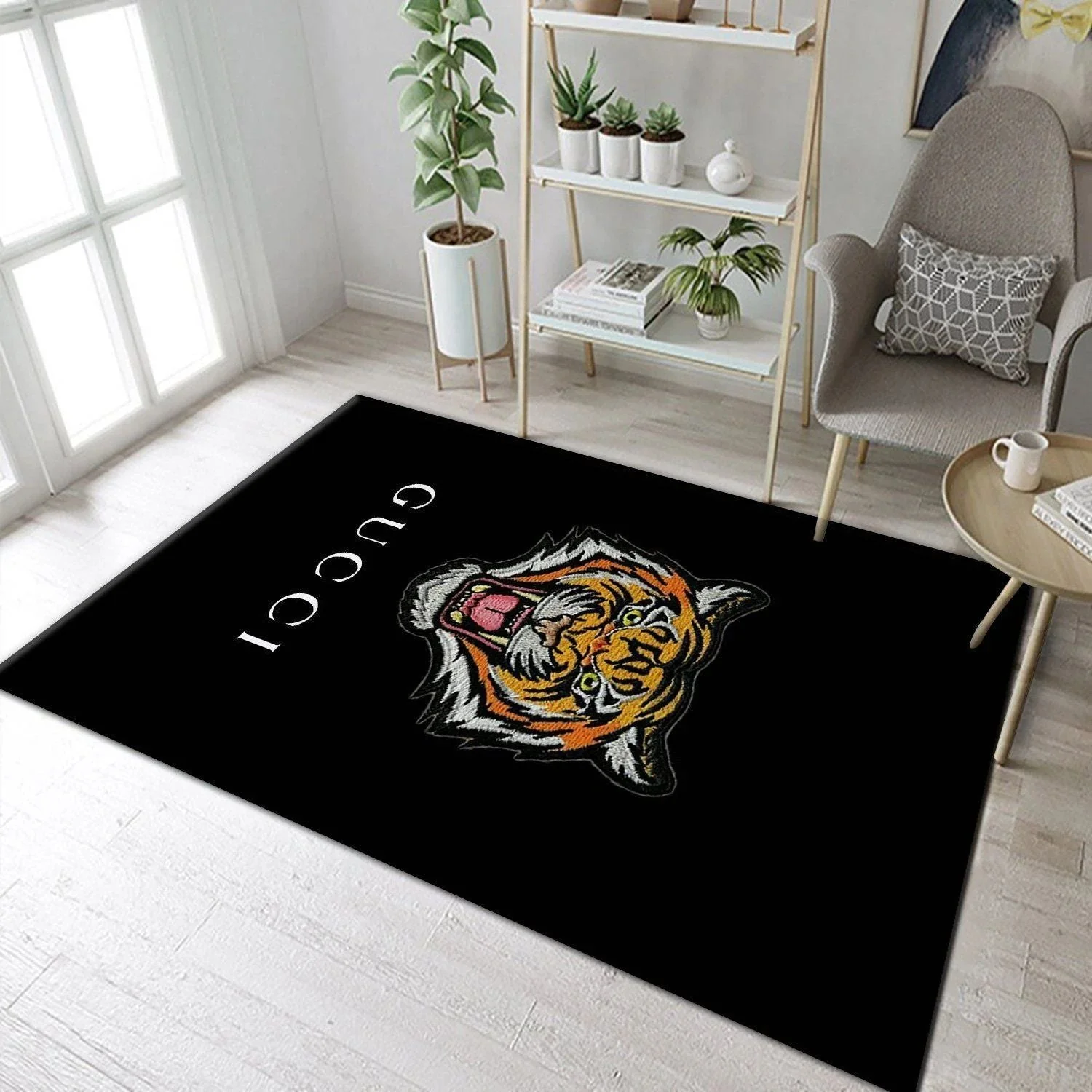 gucci rug black with tiger middle logo