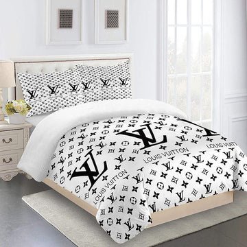 louis vuitton bed sheets with three logo white